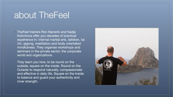 ‘The Feel’ is intuitive awareness in action, meditation in slow motion, coordinating body and mind.