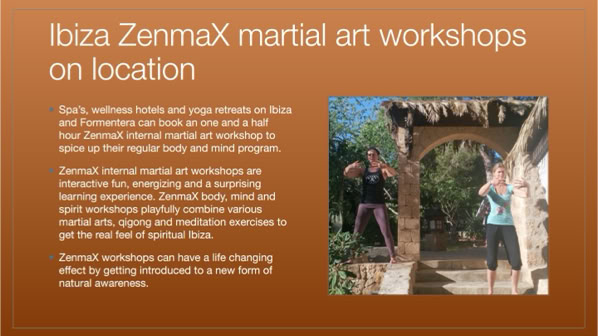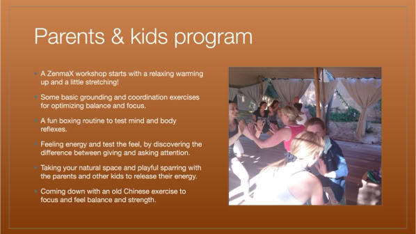 Book a ZenmaX energizing martial art - qigong intermezzo, or group balancing session for your yoga retreat, or any other workshop or seminar. We offer complete workshops from 1,5 hour to a whole morning, afternoon or evening program at the location of your wish. Our energizing intermezzos and workshops are also available a family tuning event at your private location or as a management training at your company.